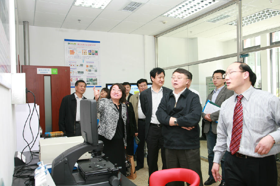 2011年5月12日下午,中国科学院江绵恒副院长在李静海副院长和高技术研究与发展局田静局长等领导陪同下视察了中国科学院过程工程所和生化工程国家重点实验室,听取了张锁江所长作的题为“面向‘创新2020’引领过程工程跨越发展”工作汇报。随后,与科研和管理骨干进行座谈并发表了重要讲话。下图为实验室马光辉副主任带领江绵恒副院长、李静海副院长和田静局长参观生化室自行研制的可用于微球和微囊规模化可控制备的膜乳化中试装备,并进行讲解。