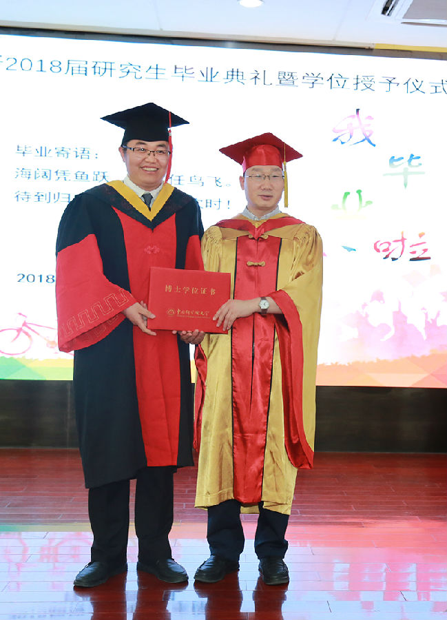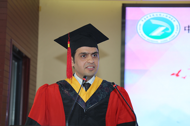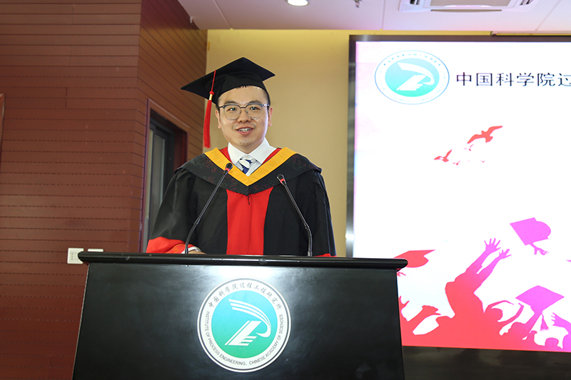毕业生代表夏宇飞博士动情地回顾了自己在过程所的学习生涯和拼搏经历,论文发表遇阻时,他选择相信团队,相信自己;择业迷茫时,他选择相信中科院,相信过程所;对于未来,他依然选择相信,相信国家,相信体制,相信通过在座各位的努力,中国科研一定可以走向世界舞台的中央。相信的力量给人以鼓舞,在场的毕业生感同身受。Toheed Ahmed作为留学生代表回顾了在过程所的学习生活,表达了自己对导师、同学对以及研究所的深深感谢。