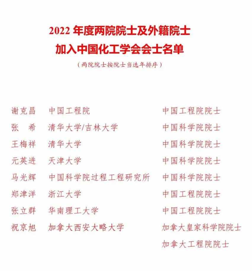 中国化工学会会士是中国化工学会会员的最高学术称号,是终身荣誉。至此,中国化工学会拥有会士122名,其中两院院士51名。2022年度两院院士及外籍院士加入中国化工学会会士的具体名单如下: