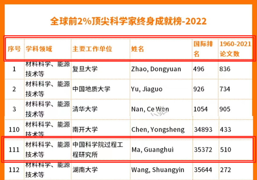 而就在10月10日,由美国斯坦福大学John P.A.Ioannidis教授团队发布的全球前2%顶尖科学家榜单更新了2022年版本。马光辉院士同样荣登全球前2%顶尖科学家终身成就榜。本榜单统计时间为1960-2022年,涵盖全球200,409 位科学家。榜单主要分为“终身科学影响力排行榜(1960-2022)”和“2022年度科学影响力排行榜”两个榜单(见下图)。