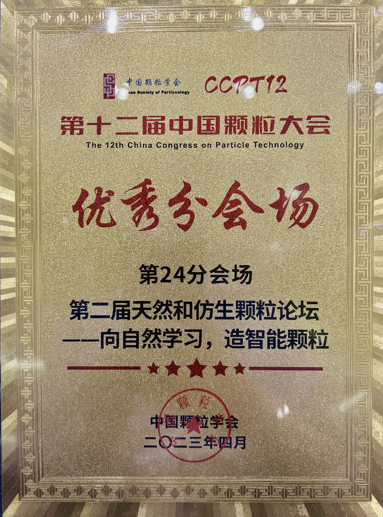 此次论坛作为继2020年之后的又一次天然和仿生颗粒领域的盛会,让更多青年学者站在领域前沿,分享研究成果,碰撞科研火花,巩固并拓宽了国内该领域学术交流的平台。此次论坛作为第十二届中国颗粒大会第24分会,被评为优秀分会场,并在大会闭幕式上颁发获奖证书。