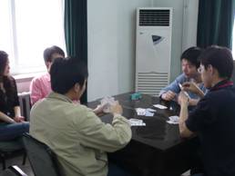 为了丰富同学们的课余生活,促进各个课题组同学间的交流,缓解大家平时实验、学习的压力,在生化实验室工会的大力支持下,生化实验室学生会于5月9日(星期五)下午组织了生化首届升级大赛。 通过赛前报名一共有二十余位同学参加此次比赛。下午三点,比赛正式开始。经过抽签,大家确定了自己的对手,初赛正式开始。在一个小时的初赛过程中,生化实验室二楼会议室内气氛极为热烈,参赛选手全神贯注,观看的同学也是兴致勃勃。 初赛过程相当激烈,大家水平旗鼓相当,真是棋逢对手、将遇良才。很多组都出现了胶着的场面。你方唱罢我登场,一方刚刚取得了微弱的优势,下一局对手马上迎头赶上,甚至反超,选手们一个个绷紧了神经,一张一张的计算剩下的牌的情况以及自己的优势;观众们则是看得大呼过瘾,为选手抓到好牌而兴奋、为选手运气不好而惋惜。最终,有5对选手凭借微弱的优势,其中3对还是凭借最后一局的大逆转,进入了决赛。 决赛依旧是通过抽签决定对手。虽然选手减少了,但是场面却更加激烈。由于最终的排名是通过净胜局来确定,大家都铆足了劲,向冠军发起了冲击。为了确保比赛过程中不会出现影响比赛公平性的行为,学生会的同学还全程监督了比赛的过程。经过一个半小时的激烈争夺,刘彬彬和杨茂华组成的队伍取得了最终的冠军。 生化文体部:谢梓峰 |