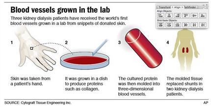 据美国物理学家组织网6月28日(北京时间)报道,3名波兰透析病人接受了全球首例由捐赠皮肤细胞制造、在实验室中种植而成的血管的移植手术。这项研究的最终目的是制造出一些大小和形状不同的动脉和静脉,供糖尿病患者、肢体受伤的士兵或者需进行心脏搭桥手术的病人等随时取用。 该研究由美国Cytograft组织工程公司进行。研究人员首先从一片捐赠的手背皮肤上提取出细胞,然后将细胞植入组织薄片中,这些组织能被卷成血管。到目前为止,接受者的免疫系统对这些移植血管具有耐受性,因此无需抗排斥的药物或组织配型。 Cytograft公司的首席执行官陶德・麦克阿里斯特表示,最新制造出来的血管由一个捐赠者提供的细胞制成,技术简单而且成本很低,约为6000美元到1万美元,或许有成千上万名病人会从这项技术中受益。 未参与该研究的杜克大学心脏病专家罗伯特・哈林顿表示,透析中使用的血管失效是一个“巨大的公共健康问题”,最新研究或将终结这个问题。 糖尿病患者常会出现肾衰竭的情况,需要通过连接动脉和名为分路的静脉进行透析来将血管中的废物过滤掉。然而,病人一周要进行几次透析,而且容易出现血凝块、感染等并发症。更严重的是,随着病情不断恶化,病人身体上常常找不到合适的分路,而塑料分路的失败率很高,容易引起并发症,医生一直渴望能有自然替代品。这种实验室种植出来的血管没有任何人工物质,也不包含干细胞,因此不会引发争议。 科学家们此前也进行过类似的实验。2005年,大约10名病人接受了由自己皮肤细胞制成、在实验室中种植出来的血管并取得了成功,但该过程耗时长且非常昂贵,很难投入实际应用中。 美国心脏协会的前主席蒂莫西・加德纳表示,最新研究使用捐赠细胞,使该技术更实用,应用范围更广。“它提供了一种选择,让我们可以随时获得现成的身体组织,而不需要使用病人自己的细胞来制造。” 这项研究目前仍处于初期阶段。Cytograft公司正在欧洲和南美进行更大规模的实验,对40名接受实验室种植出来的血管的病人和20名使用塑料静脉的病人进行对比,以验证最新技术的实际效果。 |