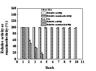在国家自然科学基金的支持下,过程工程所刘春朝研究员的研究团队利用表面活性剂活化脂肪酶使脂肪酶产生有用的活性构象,将这些活性构象有效地固定在疏水性载体上,制得超高活性的固定化脂肪酶用于催化拆分外消旋2-辛醇,调控酶促催化拆分反应获得对映体光学纯度为99%以上的手性2-辛醇。该成果为酶促制备手性2-辛醇的进一步研究和工业化生产奠定了基础。相关研究结果发表在国际杂志Bioresource Technology(2013,142:415-419)上。 图1固定化酶重复使用 (生物质工程创新团队 刘 英) |