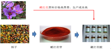 藏红花酸(Crocetin)又名西红花酸或番红花酸,为红色或暗红色晶体,是臧红花的主要有效成分之一,也存在于茜草科植物栀子果实。 藏红花酸具有多不饱和共轭烯酸结构,具有保护肝脏、抑制肿瘤、抗氧化、提高缺氧耐受力、改善视力等多种药理功能,属于医疗价值极高的药品、功能性食品及化妆品原料。藏红花中含有10%左右的藏红花酸,但藏红花原料(主产地伊朗)价格昂贵,而栀子果中含有0.5%左右的藏红花苷(可转化为藏红花酸),并且栀子果价格低廉,原料易得,在我国的种植规模大、分布广,以浙江、江西、湖南、福建、河南为主要产地;因此,栀子果成为产业化生产藏红花酸的首选原料。 中国科学院过程工程研究所植物资源与天然产物课题组自2005年开始对藏红花中功效成分进行研究,并利用栀子果开发了藏红花酸生产技术,经过多年的积累,建立了高色价栀子黄色素(≥600)生产工艺,解决了藏红花酸转化、纯化、稳定性和水溶性差等技术难题,成功规模化生产出高纯度的藏红花酸。 在河南省中国科学院科技成果转移转化项目及企业合作项目支持下,2016年开始与南阳泰瑞生物科技股份有限公司合作,2017年8月实现了工程放大及产业化生产,藏红花酸纯度达97.6%,降低了企业生产成本,提高了栀子的附加值,对于促进栀子产业发展具有重要意义。 (生物炼制工程研究部) |